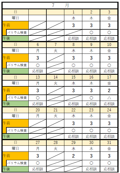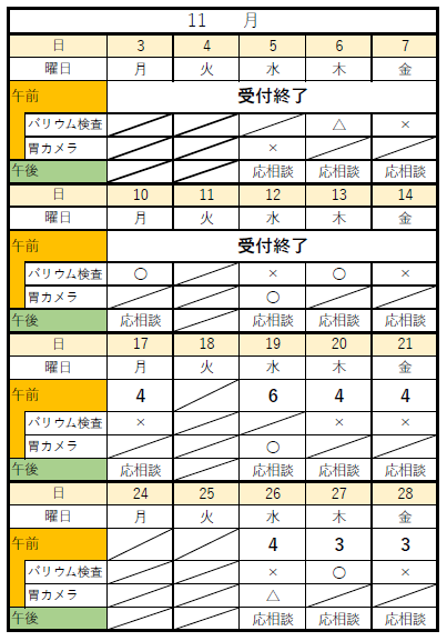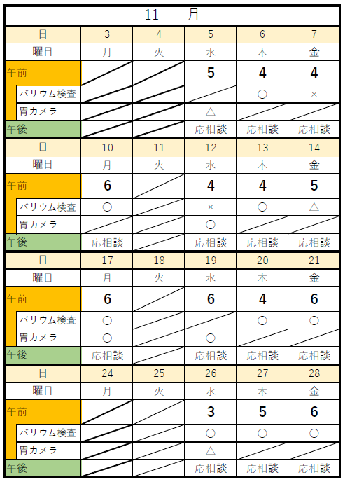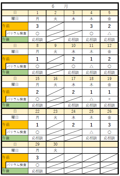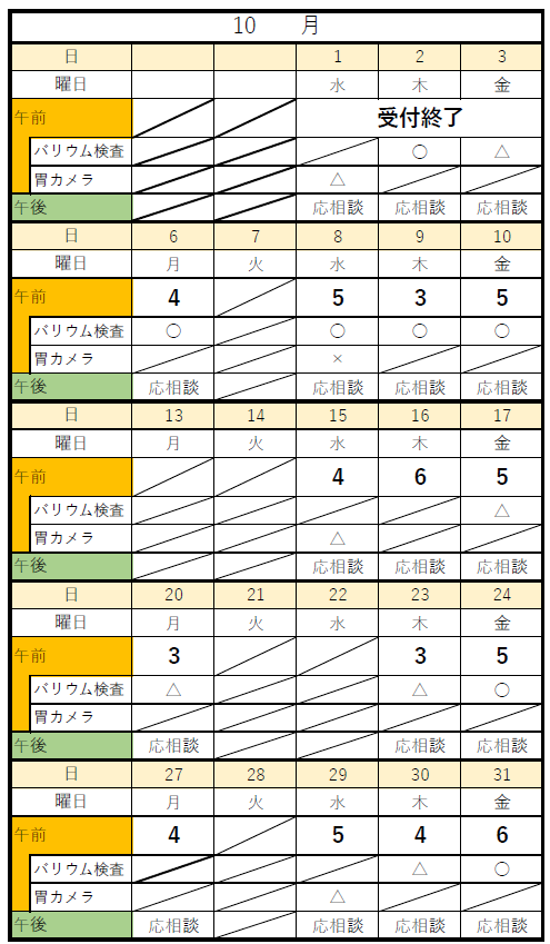 ・以下の健診の予約可能状況については下記カレンダーにて確認ください。