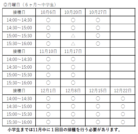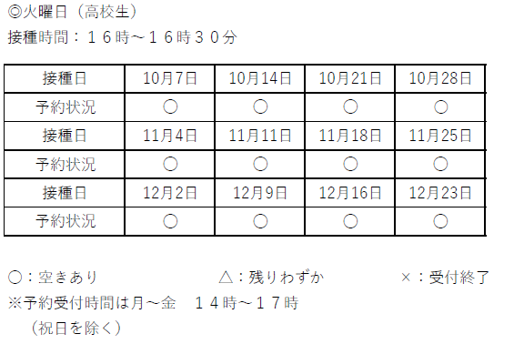 インフルエンザワクチン接種予約空き状況(10月3日現在)